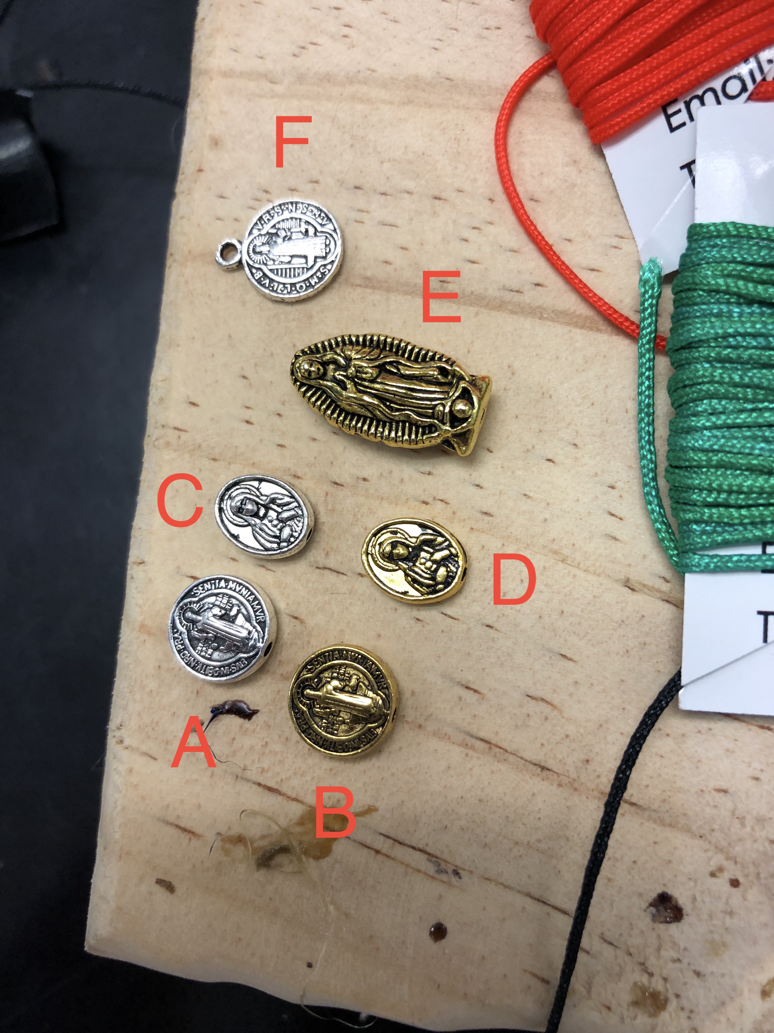 The example shown in the pictures is a black corded bracelet with a mini San Benito charm.