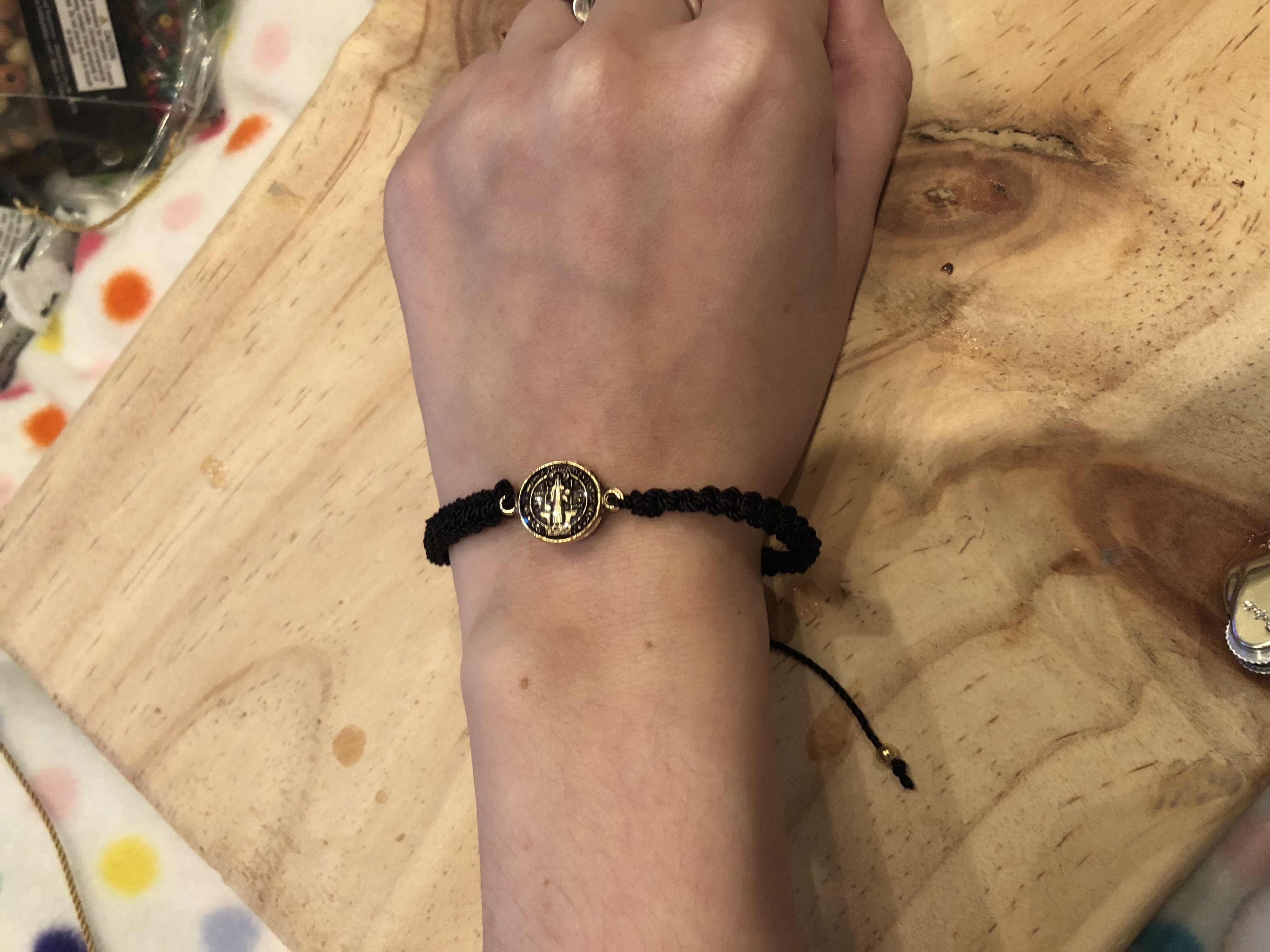 these san benito bracelets are handmade by myself. this is the small size one for the new that don’t want a large or want something bigger then the mini. san benito is the saint of protection. these are normally made with the black cording but special requests can be made.