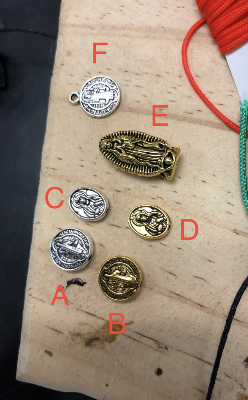 these are used with the same string as the cording bracelets. however instead of doing the knots it’s a single strand. these are cute if you like to stack different san benito’s. the pic posted is of a san benito with red string but other color options are available. Other charms are also available so please be specific on what you want