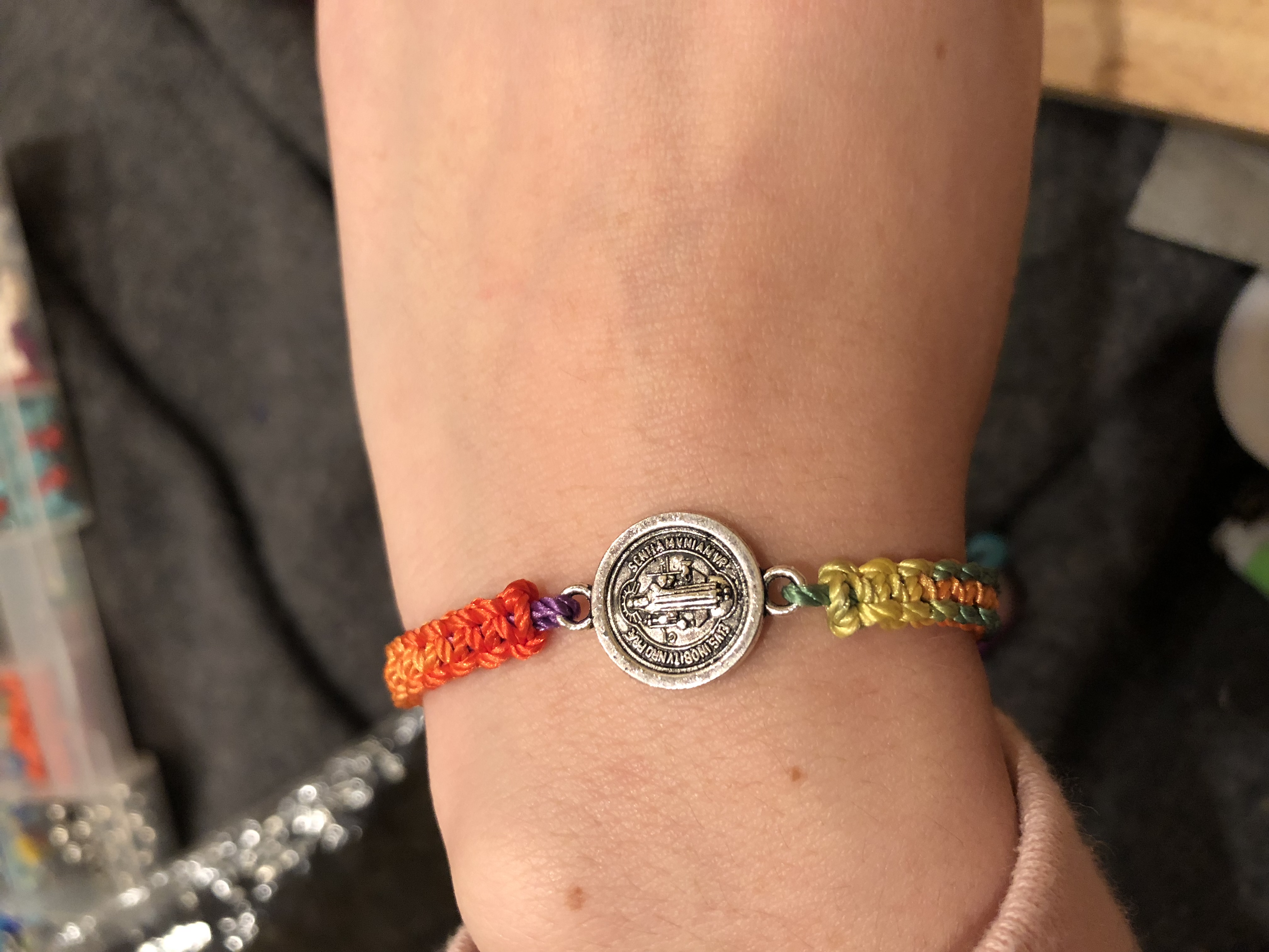 silver san benito charm with rainbow threading. this can be done in any size (if you want for your daughter, niece, etc) or i can do different color bands. colors we offer are in the picture.