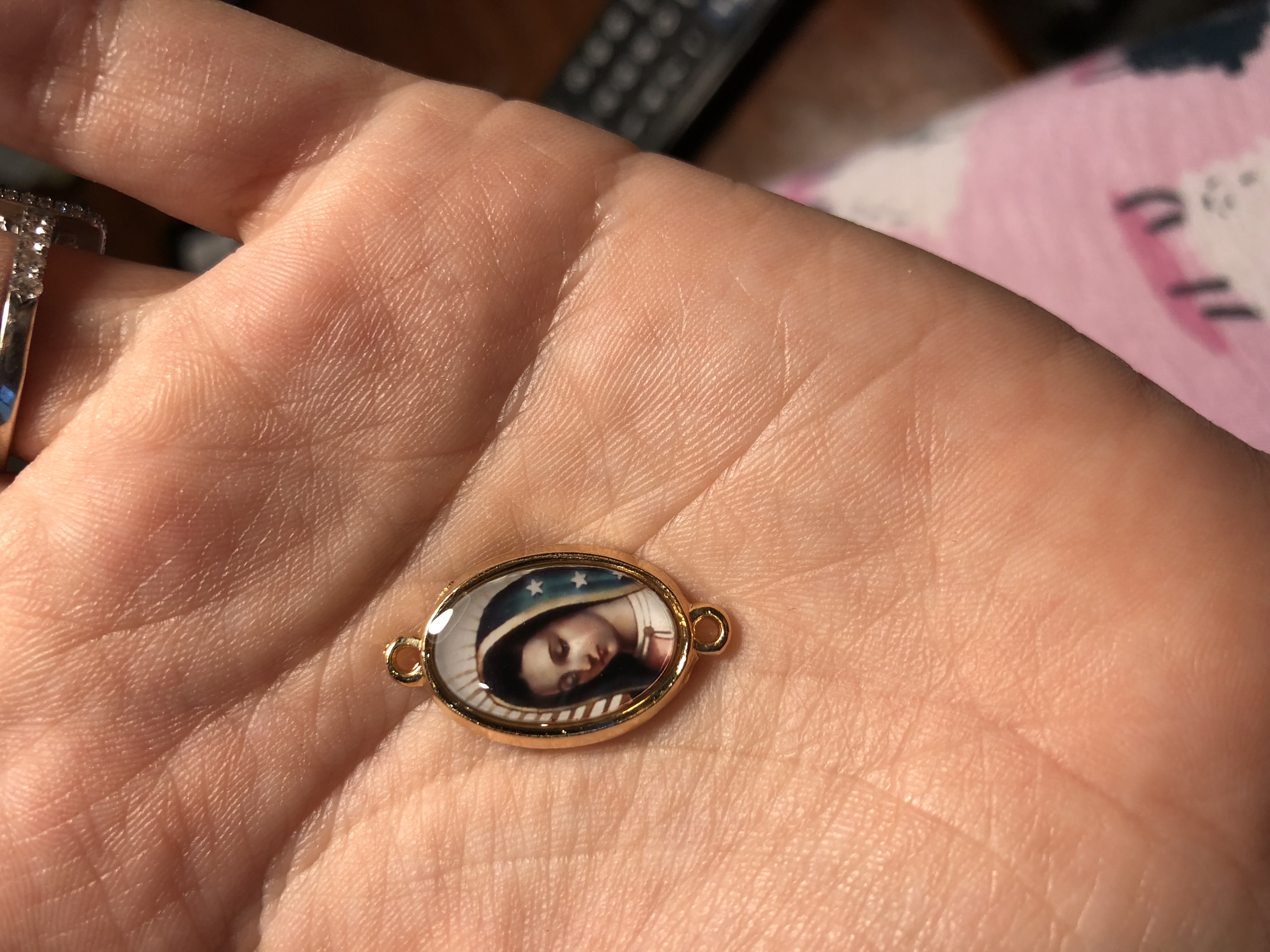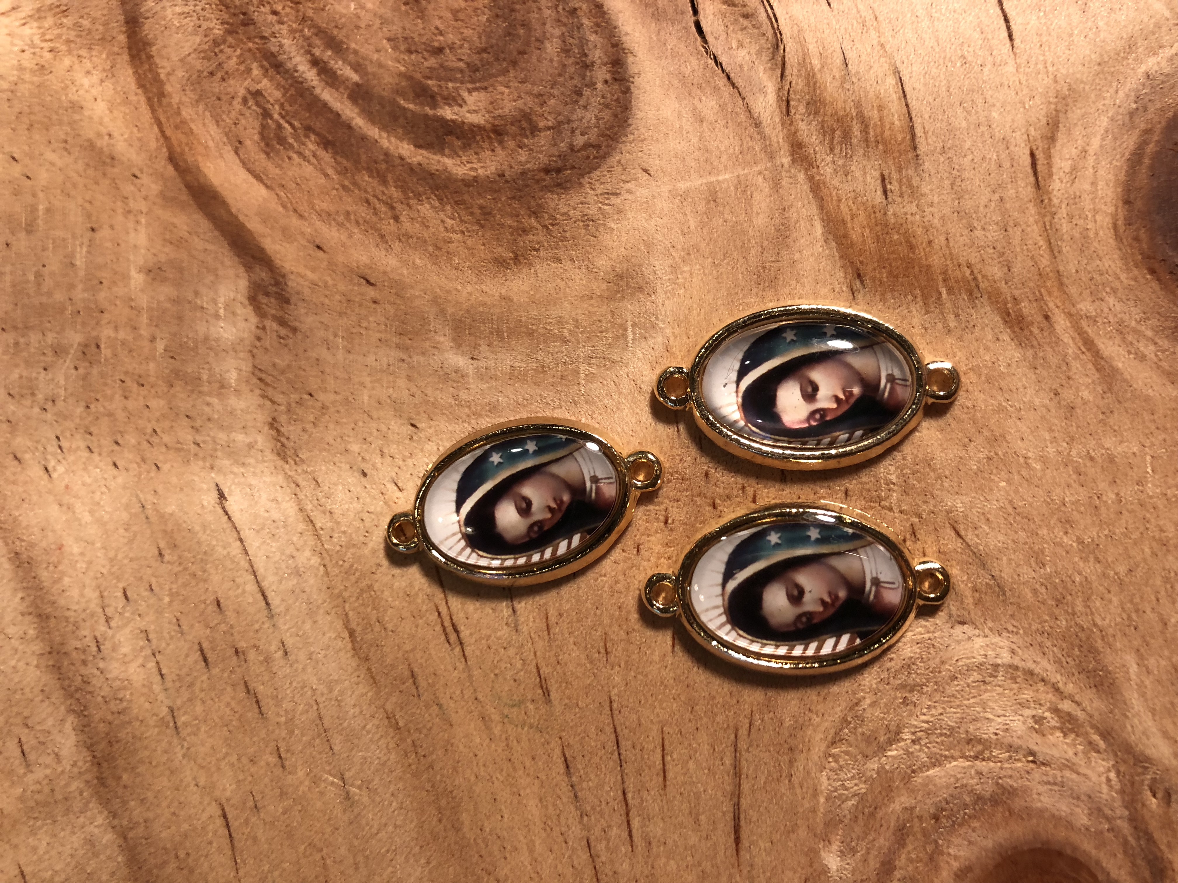 New charm- Small colored our lady of Guadalupe charm close up. These can be threaded in any desired color. Please place desired threading color in the comments when you check out.