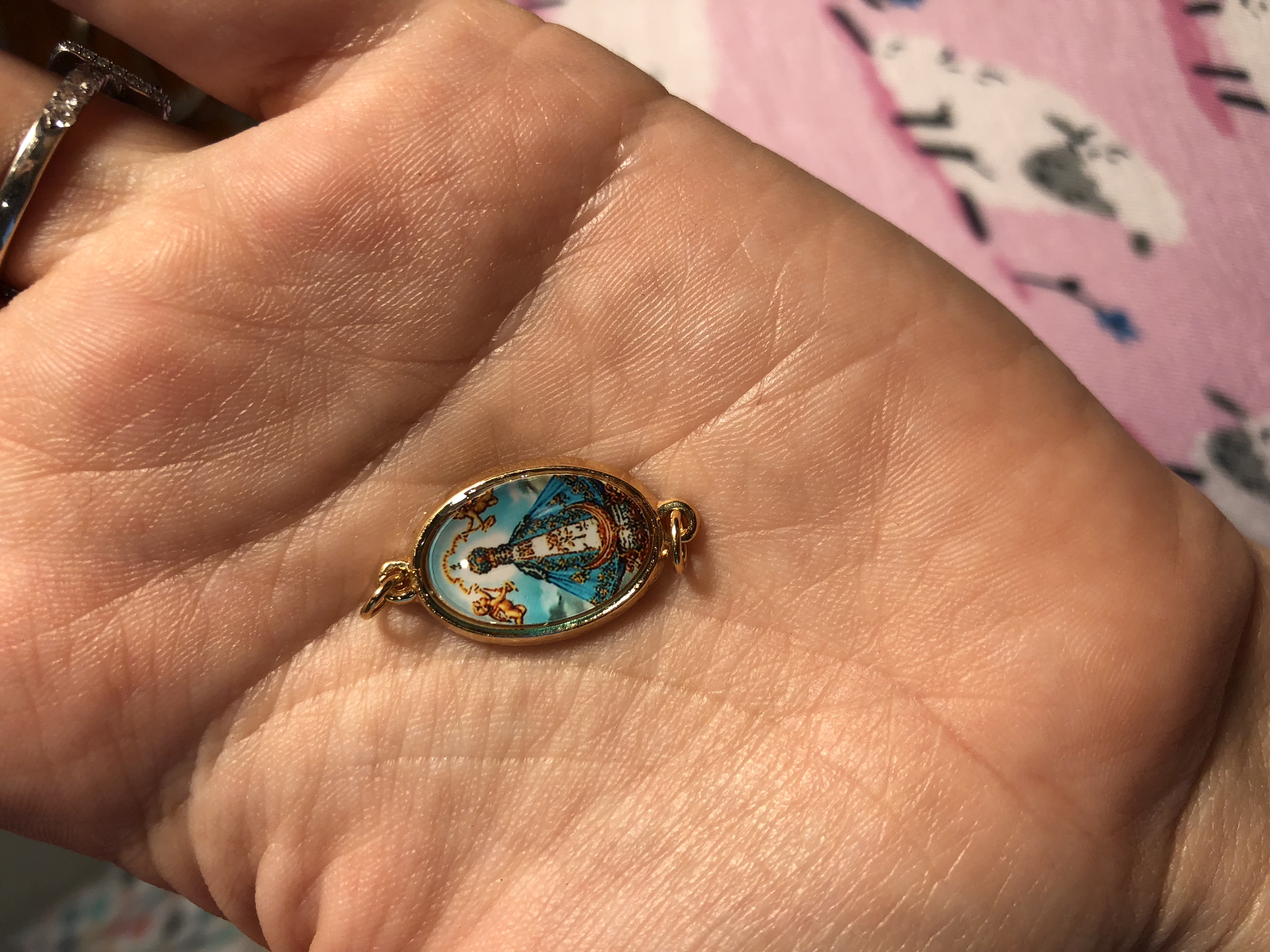 New charm- Small colored vintage Mary with angels charm. These can be threaded in any desired color. Please place desired threading color in the comments when you check out.