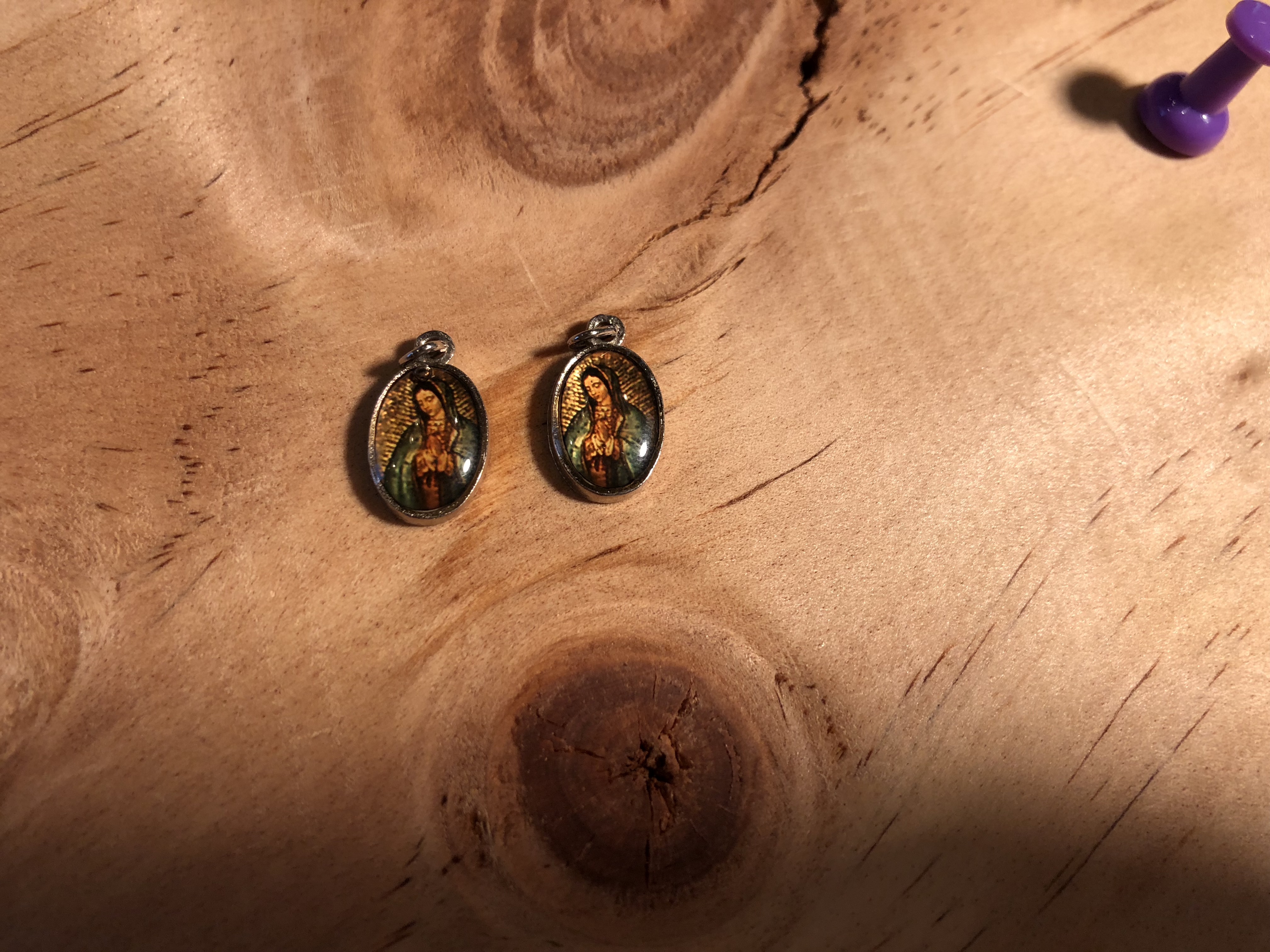 New charm- mini dangle colored our lady of Guadalupe charm. These can be threaded in any desired color. Please place desired threading color in the comments when you check out.