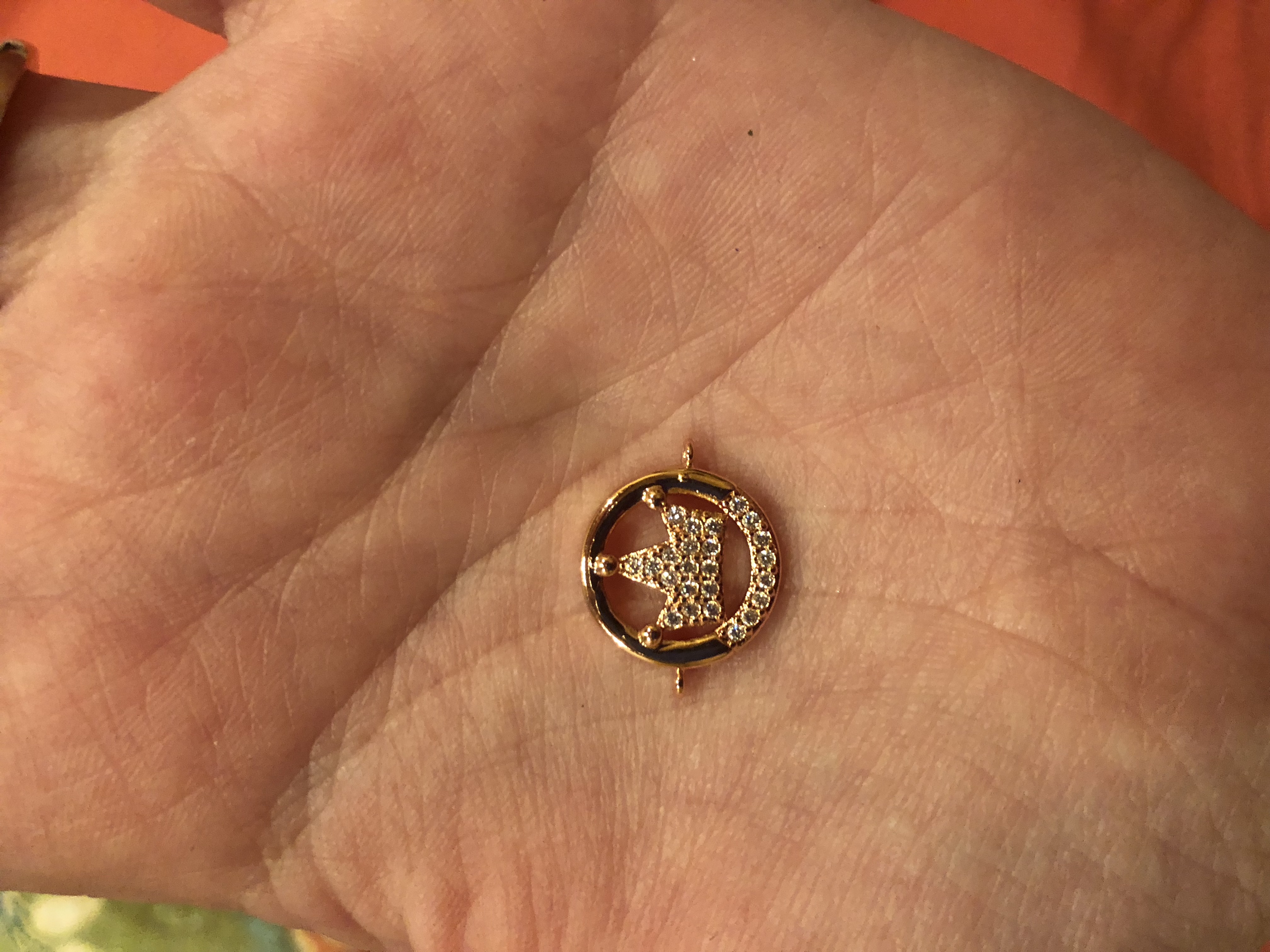 These are brand new charms in rose gold. They have a crown in the center, perfect for any princess. Threading can be done in any color but please leave desired color in the comment box when you pay at the end.