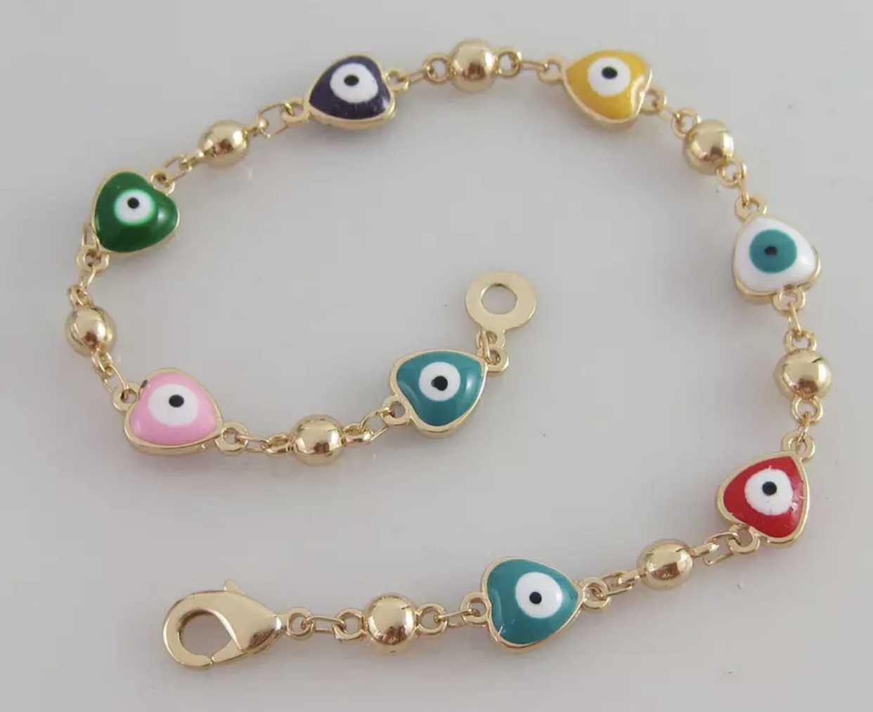 this is the multicolor heart ojo bracelet. it is linked and has gold links.