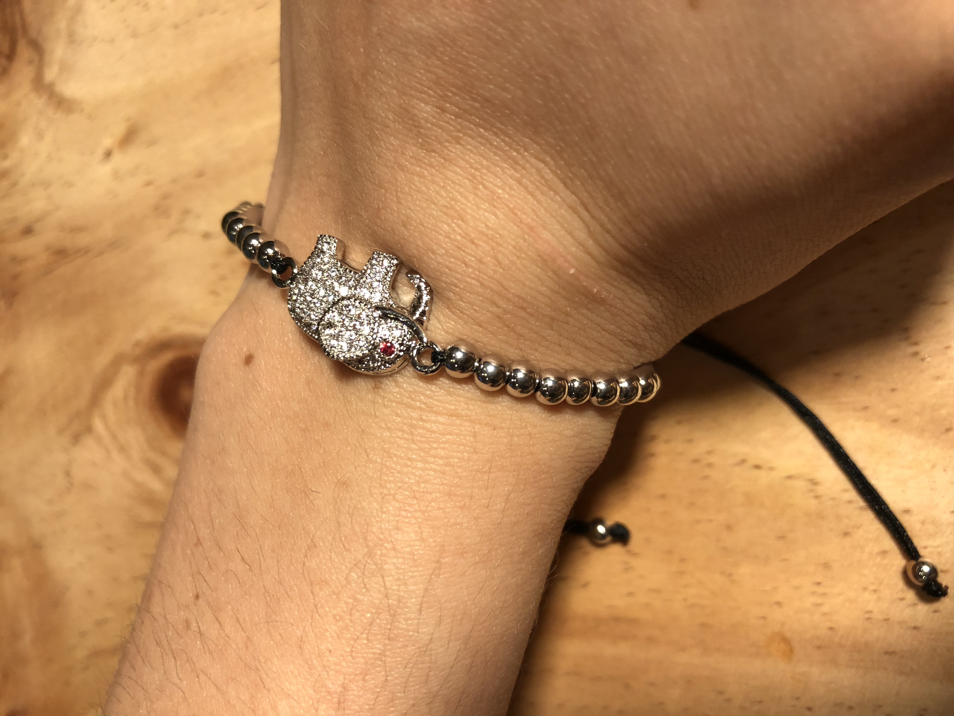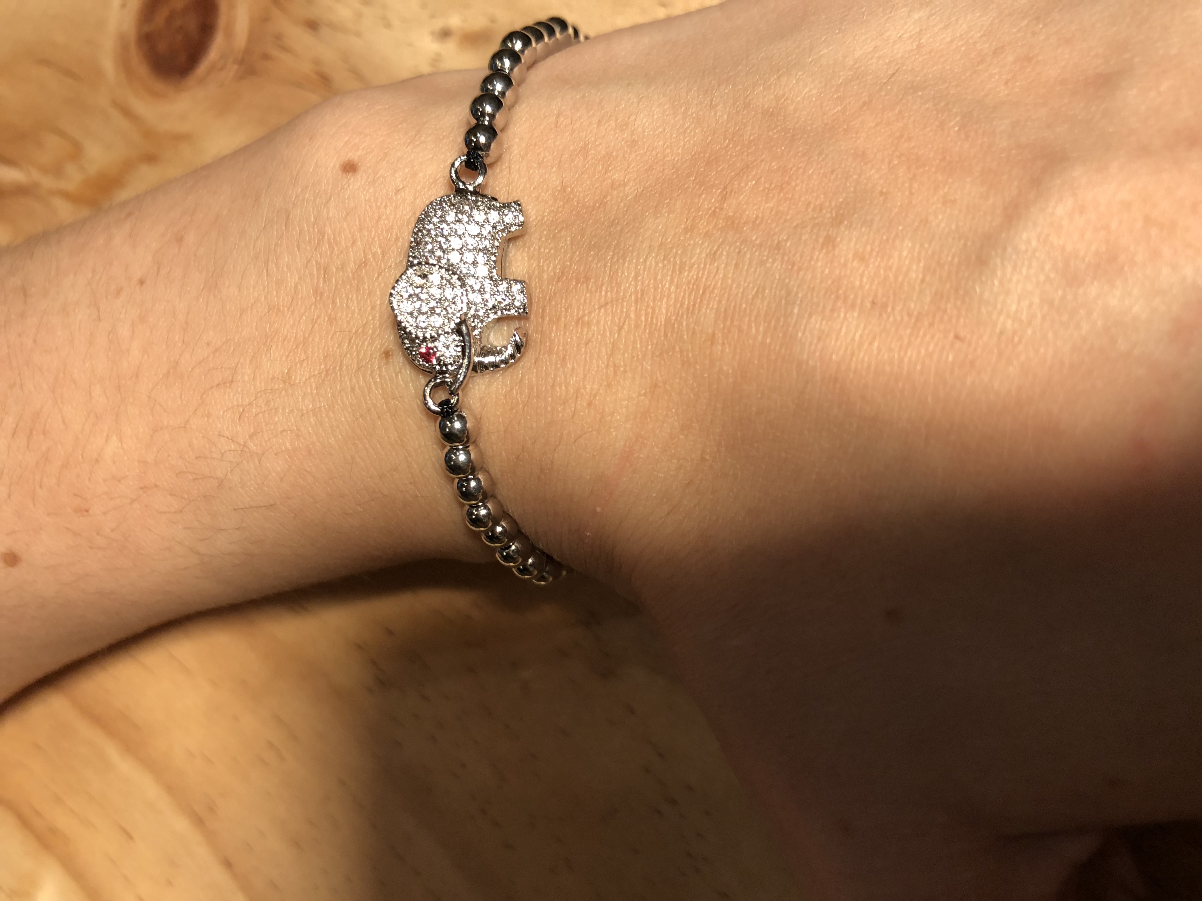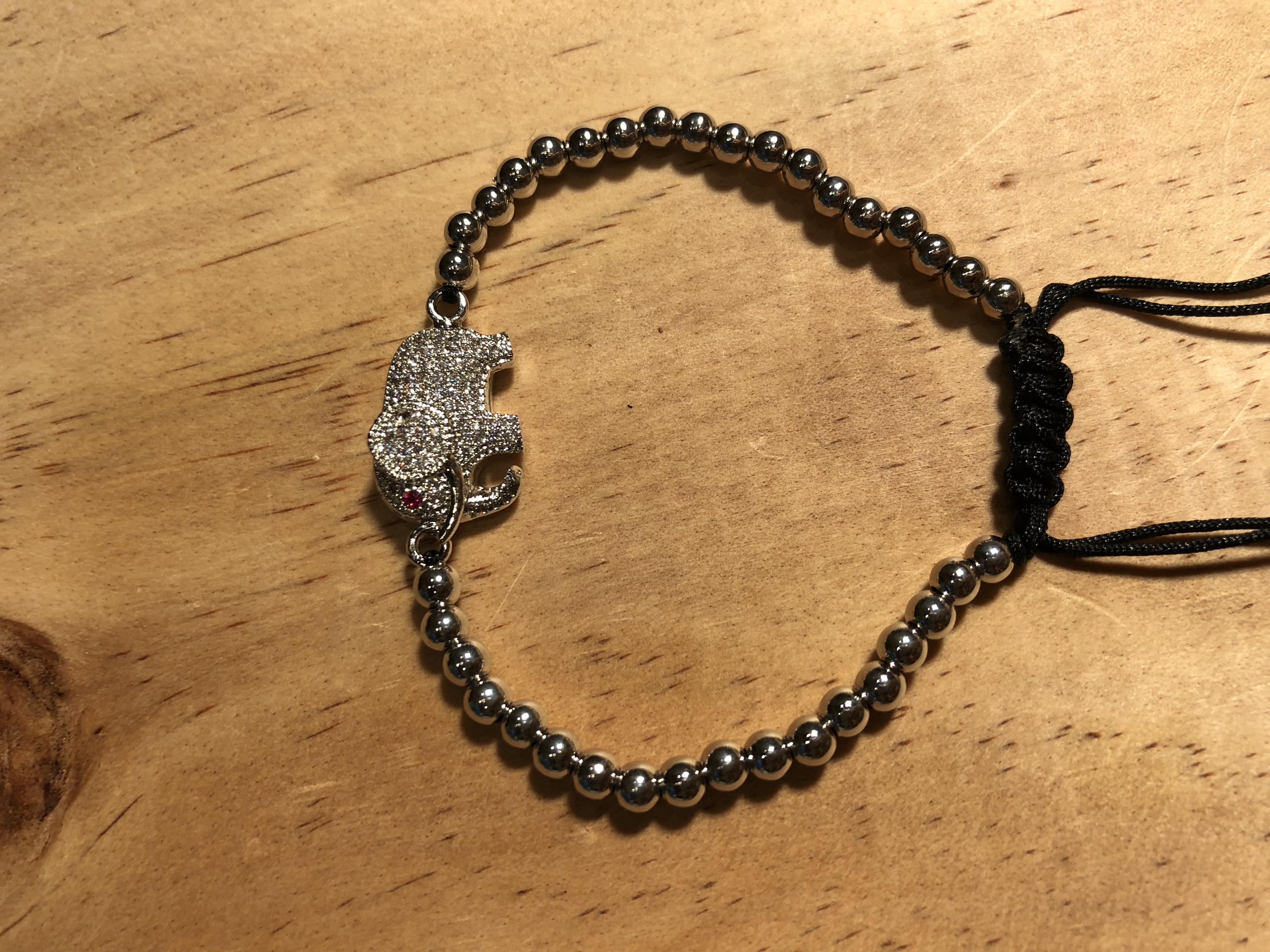 This is our CZ silver elephant beaded adjustable bracelet. The charm is all covered in all stones. It is a perfect piece for any customer.