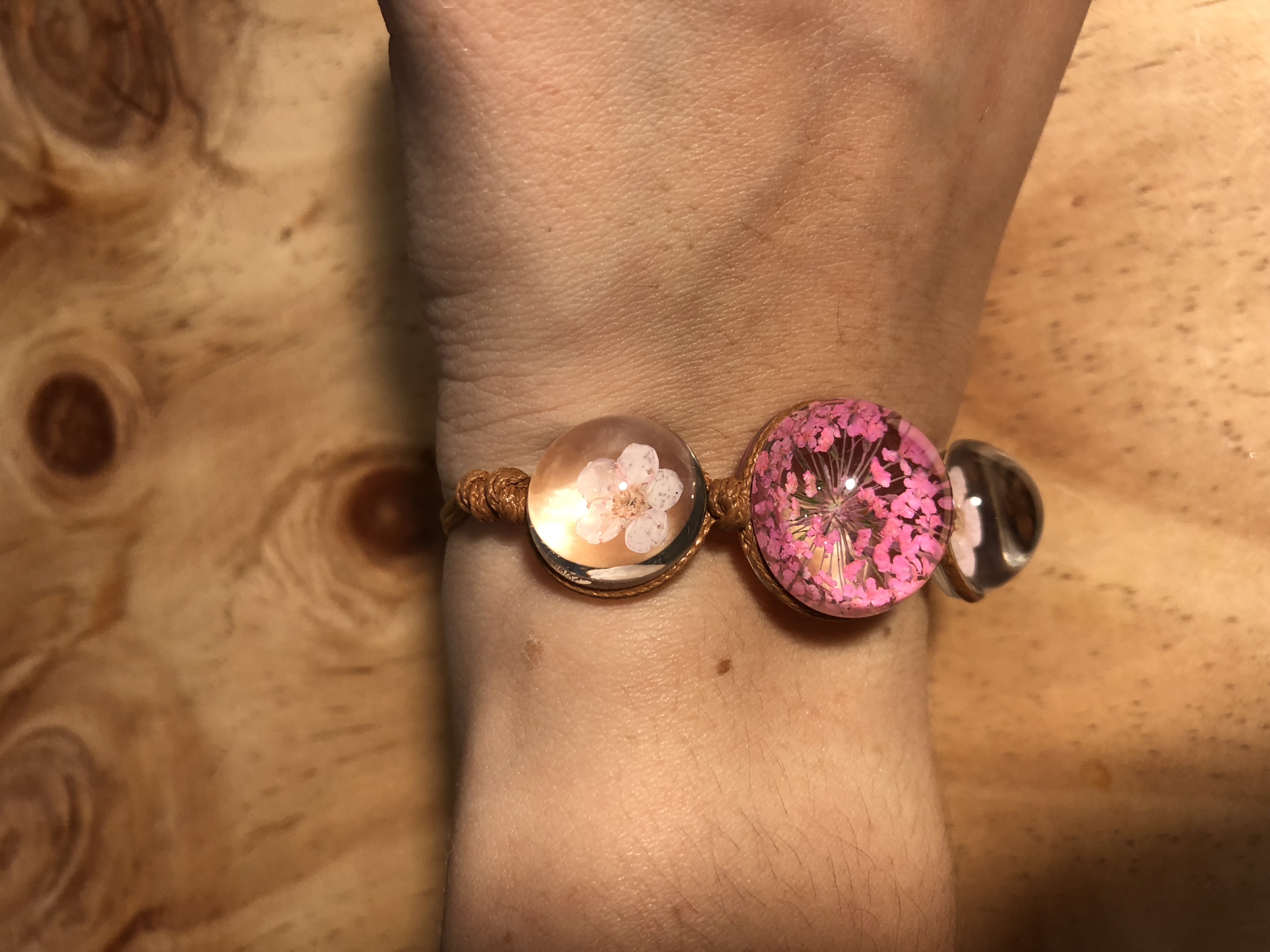 Large Pink Flower Resin Dry Flower Adjustable Bracelet