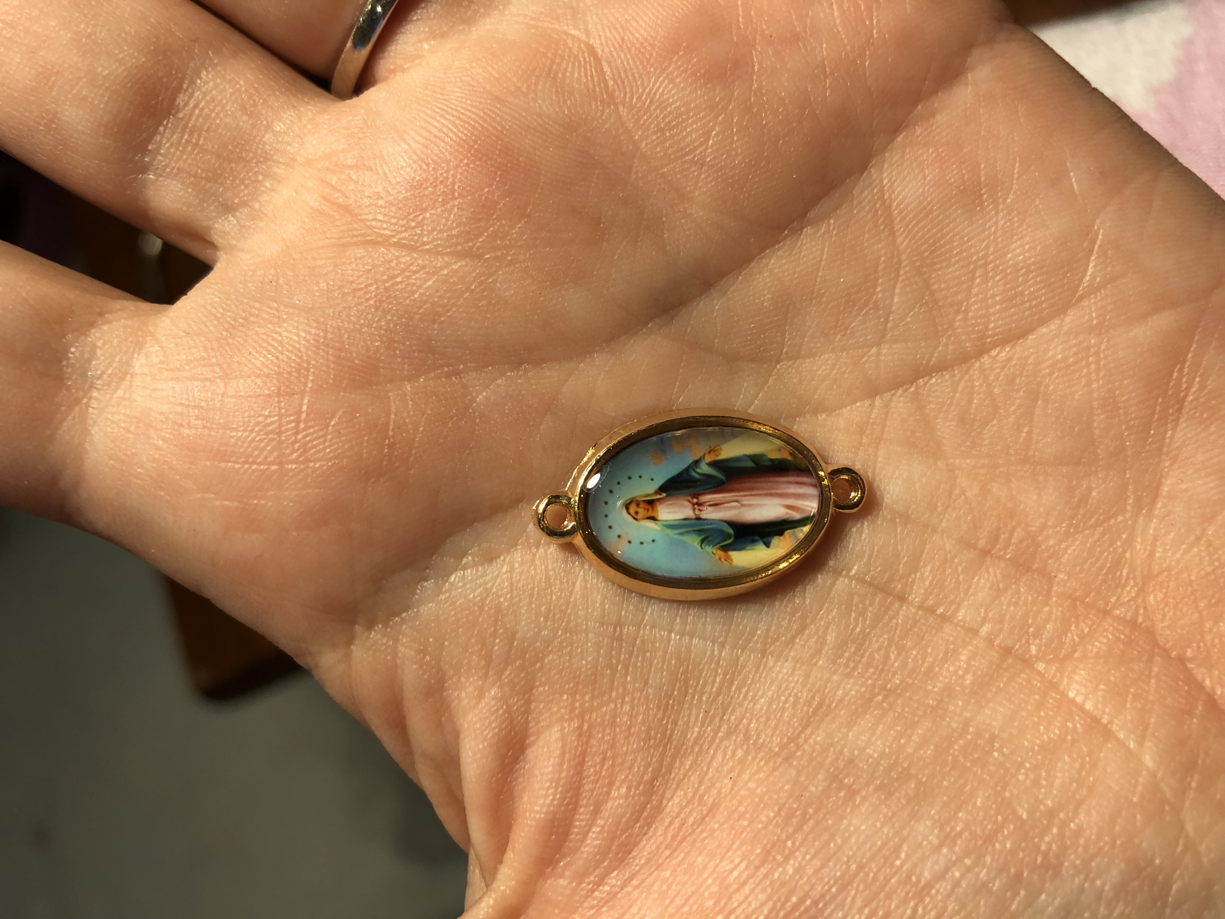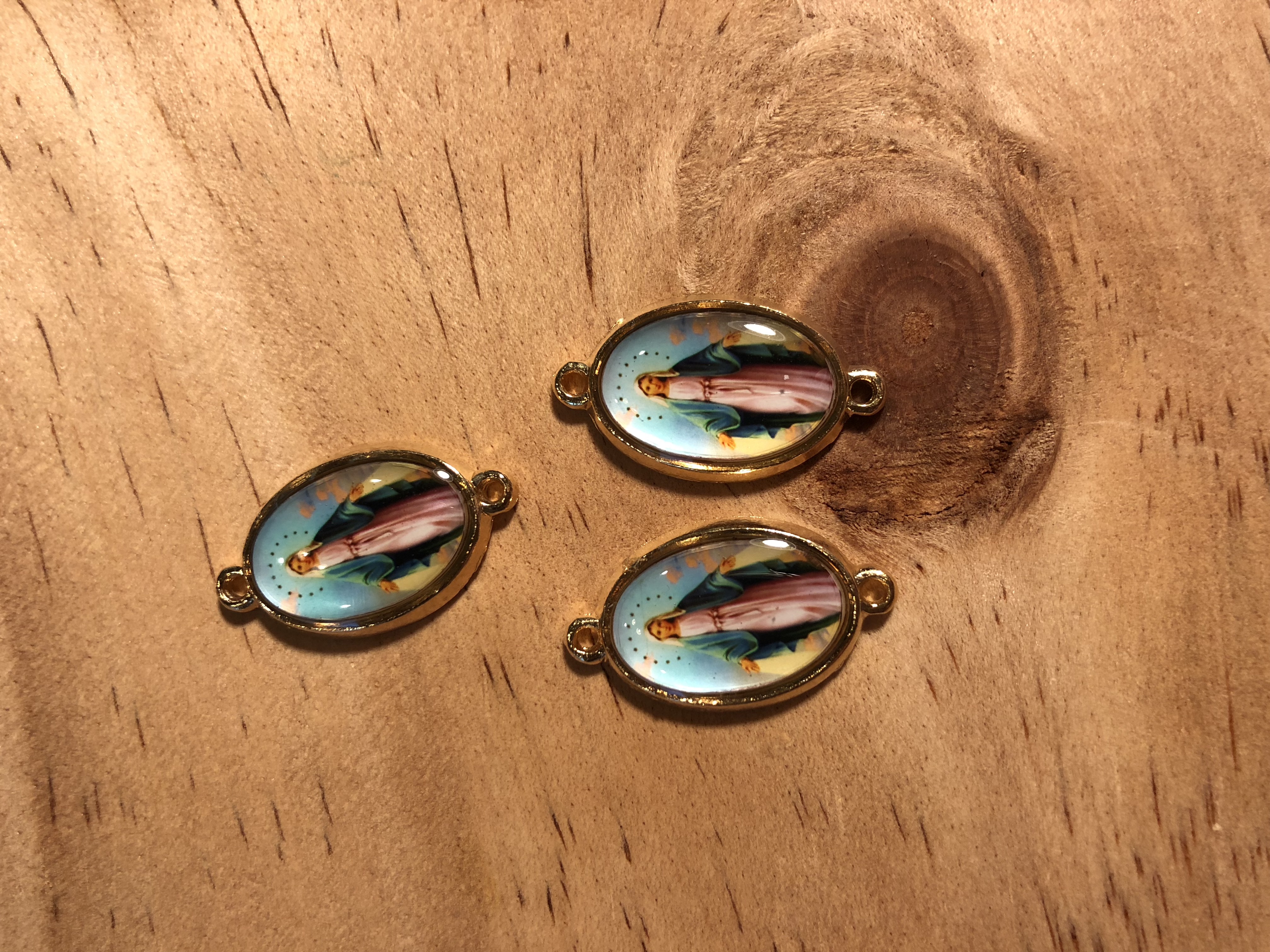 New charm- Small colored Virgin Mary charm. These can be threaded in any desired color. Please place desired threading color in the comments when you check out.